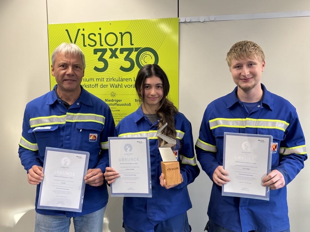 Werkzeugmechanikerazubis Liliane Luthard und Finn Solden bekommen den Arbeitssicherheitspreis / HNA: https://www.hna.de/lokales/goettingen/goettingen-ort28741/goettinger-novelis-azubis-gewinnen-preis-fuer-bandsaegen-schutz-94060434.html