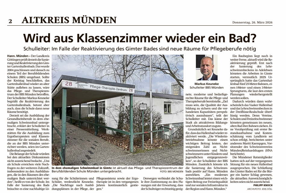 HNA vom 26.03.2026 - Wird aus Klassenzimmer wieder ein Bad?