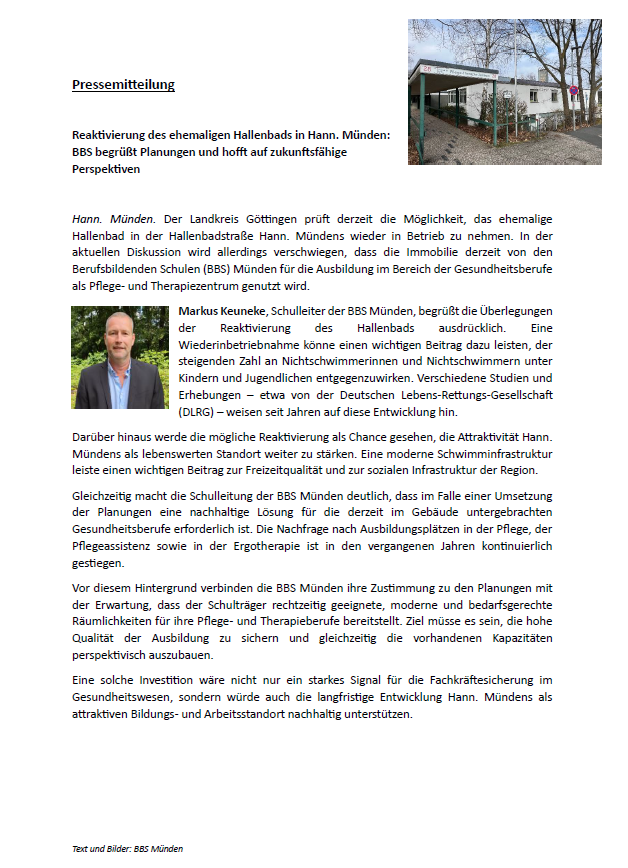 Mein Münden: Anzeige zur Ausbildung in der Generalistik